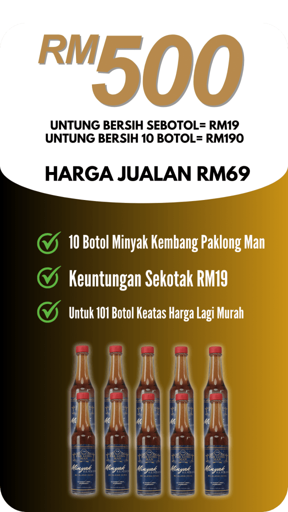 Untuk Pengetahuan Anda Setiap Penjualan Sekotak Jamu Premium Anda Untung RM19 , Untuk Jamu Sebotol Minyak Kembang Anda Untung Rm19 Dan Untuk Krim Paklong Man Anda Untung RM10 ..